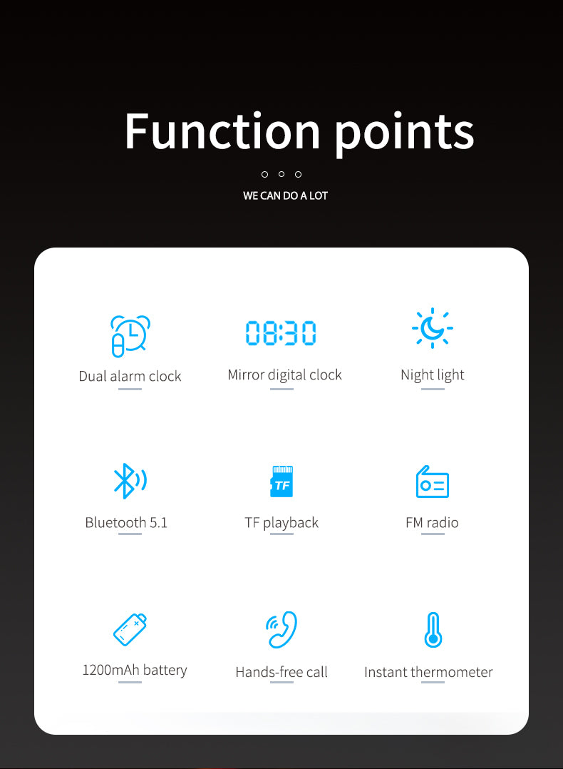 BT511 Bluetooth Speaker With Light, Alarm Clock, Temperature, TF Card,Broadcast, , Call, FM Radio, Multifunction, Multi scenarios
